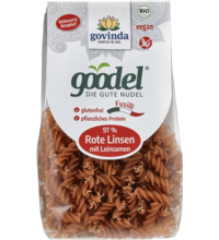 Goodel-Nudeln Fussili aus roten Linsen mit Leinsamen, glutenfrei, vegan, 250 gr Packung, Govinda