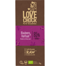 Blaubeere & Hanfsaat RAW Schokolade mit 85% Kakao, vegan, 70 gr Tafel, Lovechock
