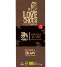 Extreme Dark RAW Schokolade mit 99% Kakao, vegan, 70 gr Tafel, Lovechock