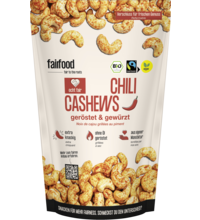 Chili Cashews, ohne Öl geröstet, vegan, 125 gr Packung, fairfood Freiburg