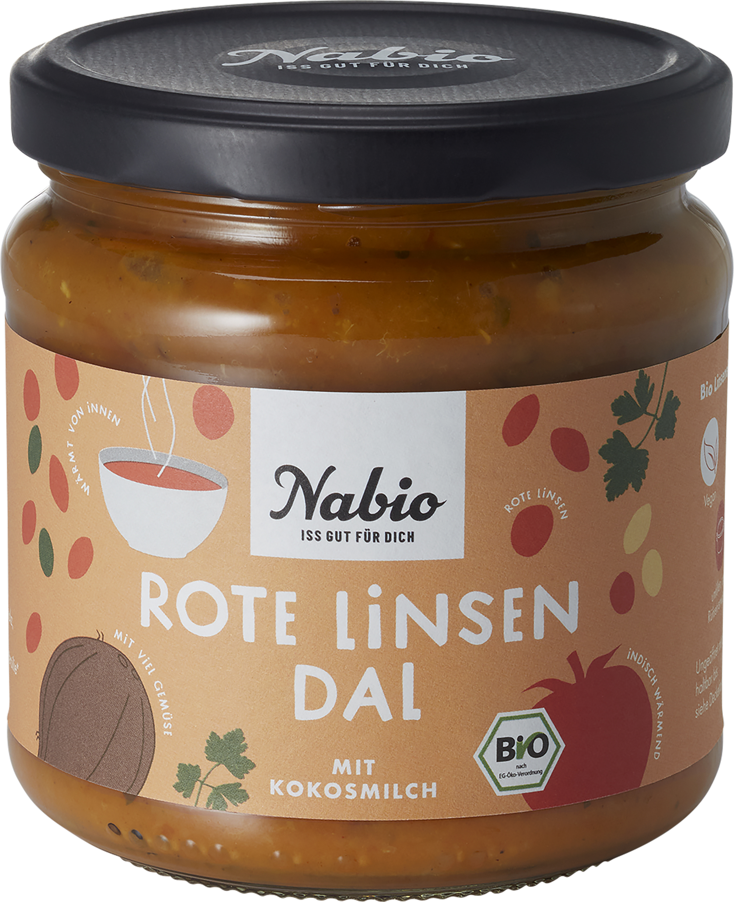 Eintopf Rote Linsen Dal mit Kokosmilch, vegan, 365 gr Glas, Nabio