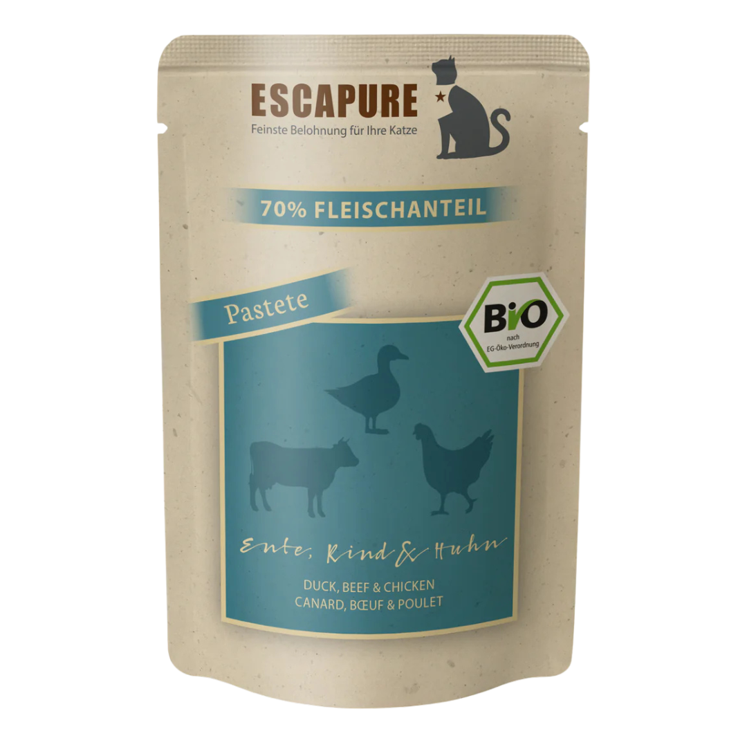 Katze Nassfutter Pastete Ente, Rind & Huhn, 100 gr Beutel, Escapure
