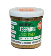 Veganer Aufstrich Leberwurst mit Röstzwiebeln (aus Linsen), 140 gr Glas, HEDI