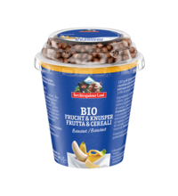 Frucht & Knusper Joghurt Banane mit Schokobällchen, 3,9% Fett, 150 gr Becher, Berchtesgadener Land