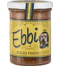 Hundefutter Ebbi Geiles Fressi, 400 gr Glas, Wuff & Mau Heimtiernahrung