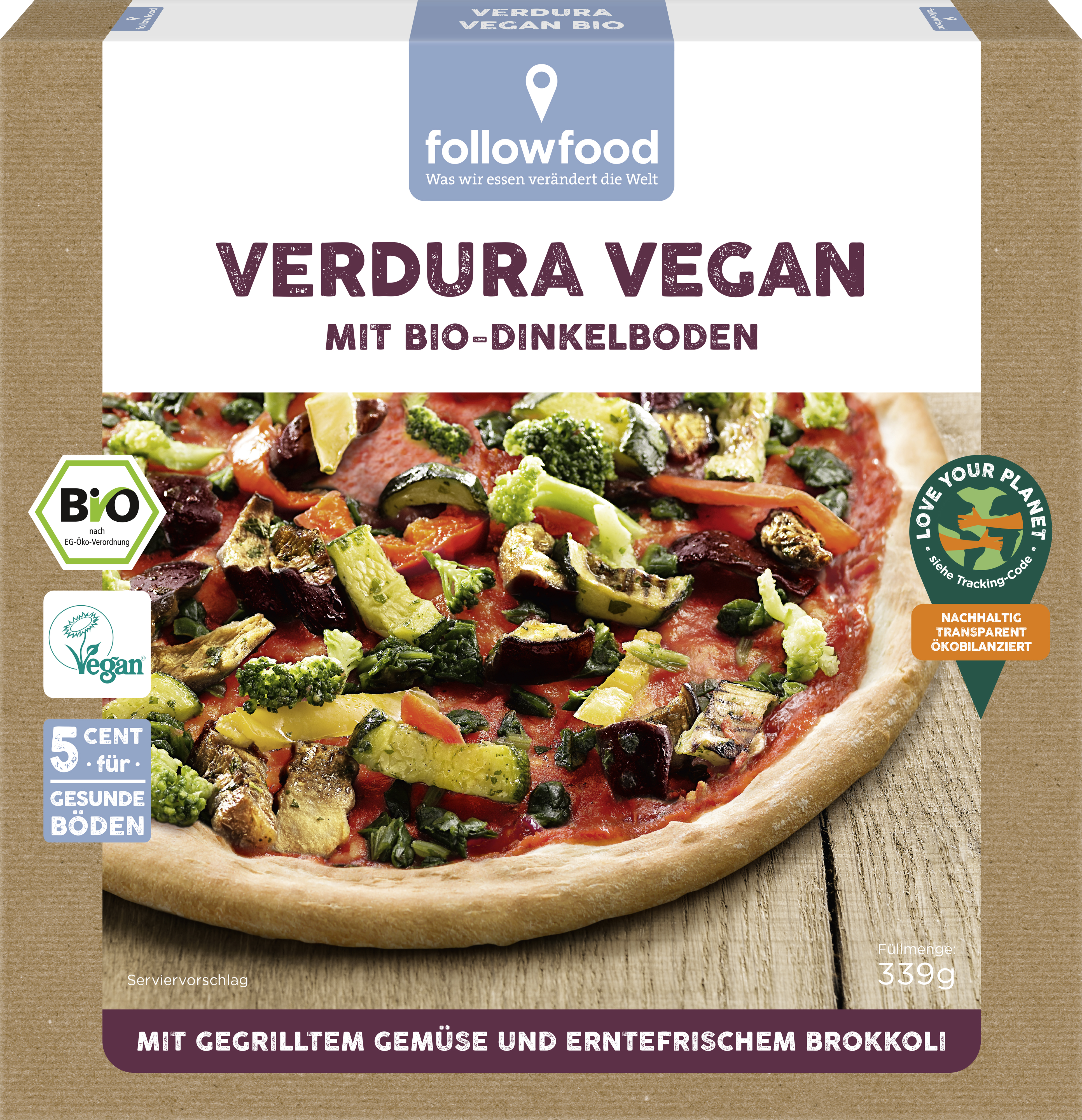 Dinkel-Pizza Verdura, vegan, 339 gr Schachtel, Tiefkühlware, followfood